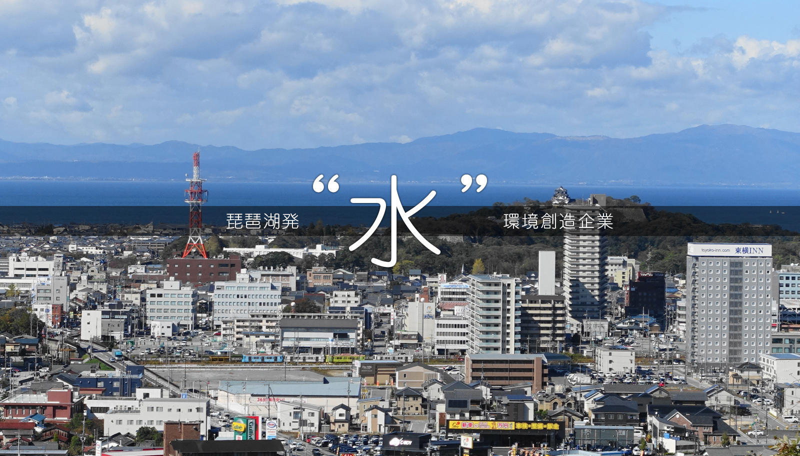 琵琶湖の湖東にある彦根市に事業所を置く当社では、「水と人間の望ましい関係を作り出す」を合言葉に、